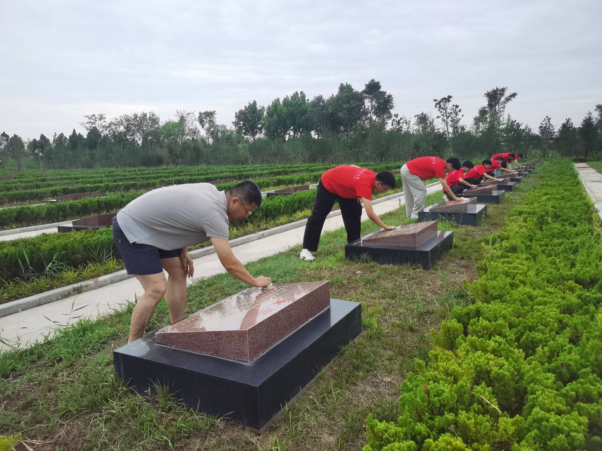 烈士陵园忆忠魂,擦拭墓碑寄哀思